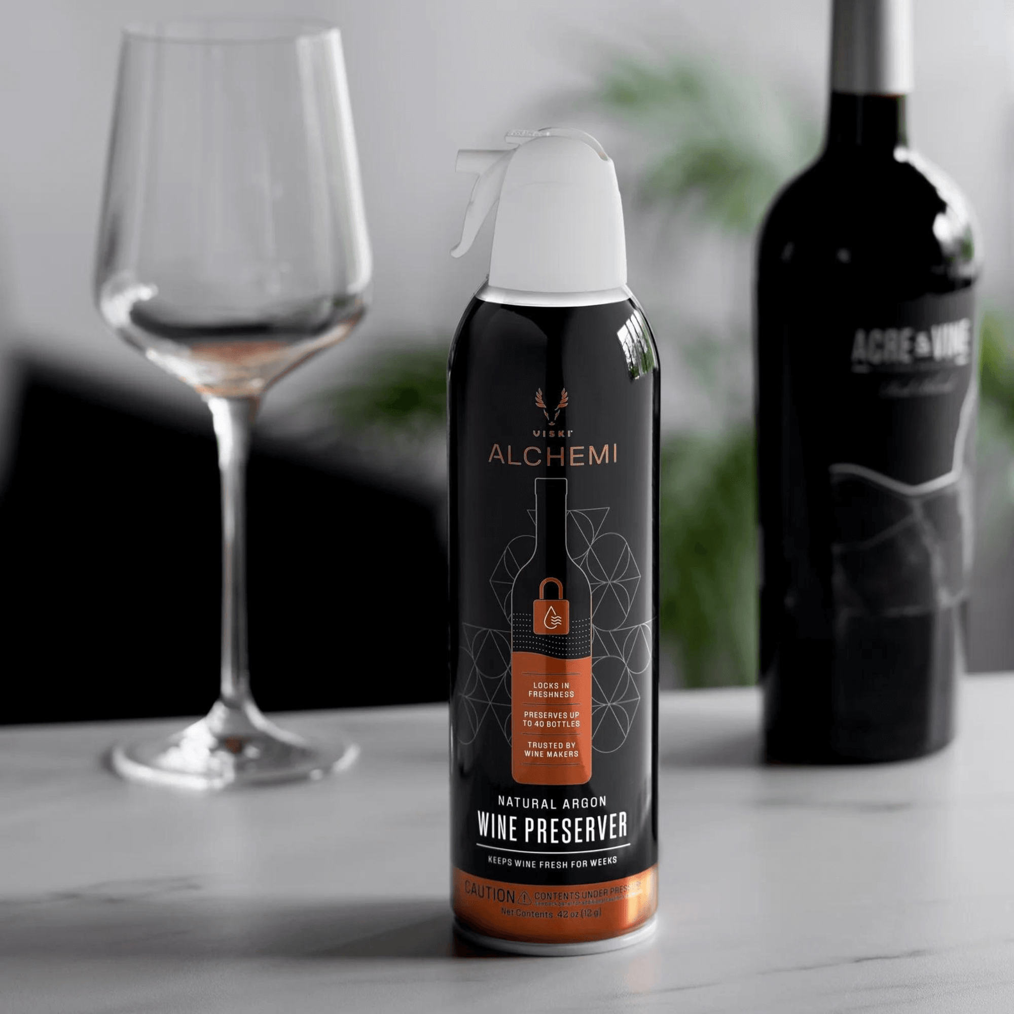 Keep your wine fresher and longer with the Alchemy Argon Wine Preserver. Trusted by winemakers and used in the bottling process, argon gas displaces oxygen, creates a protective barrier that prevents oxidation, and keeps your wine flavorful for up to 30 days.